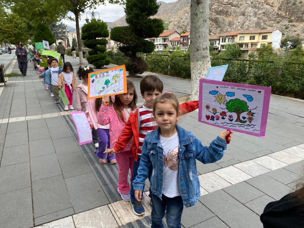 Çevremizi Koruyalım Etkinliği: Okul olarak düzenlenen yürüyüşte doğanın korunması gerektiği mesajı verildi.