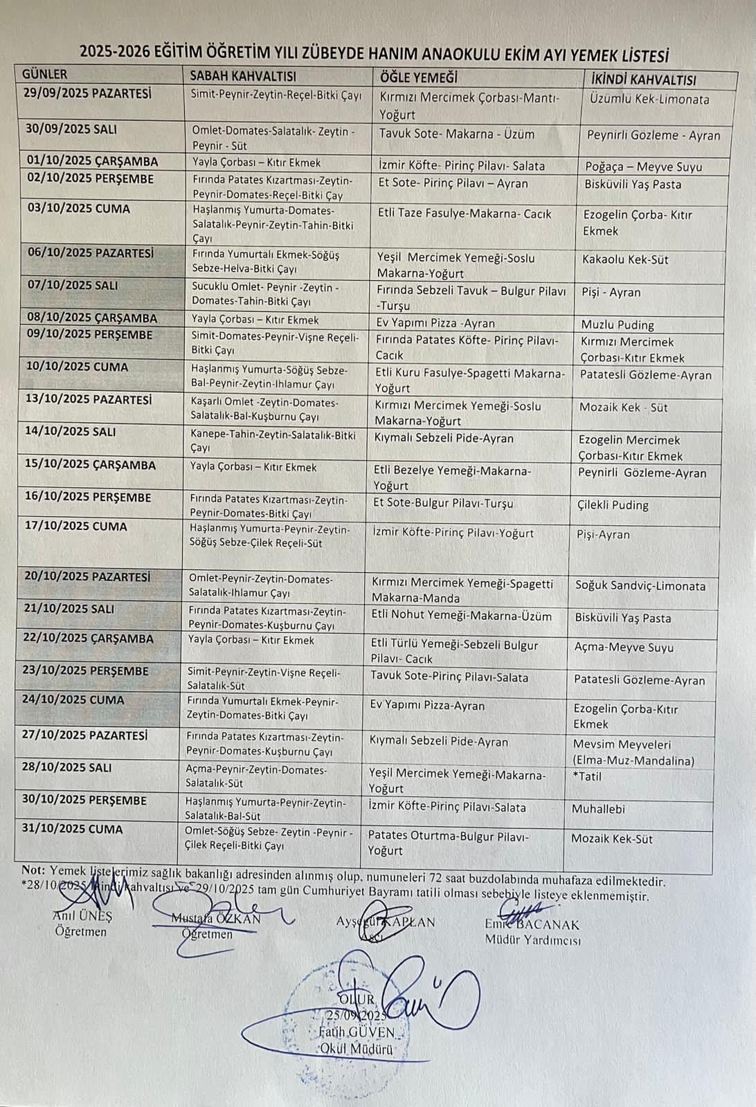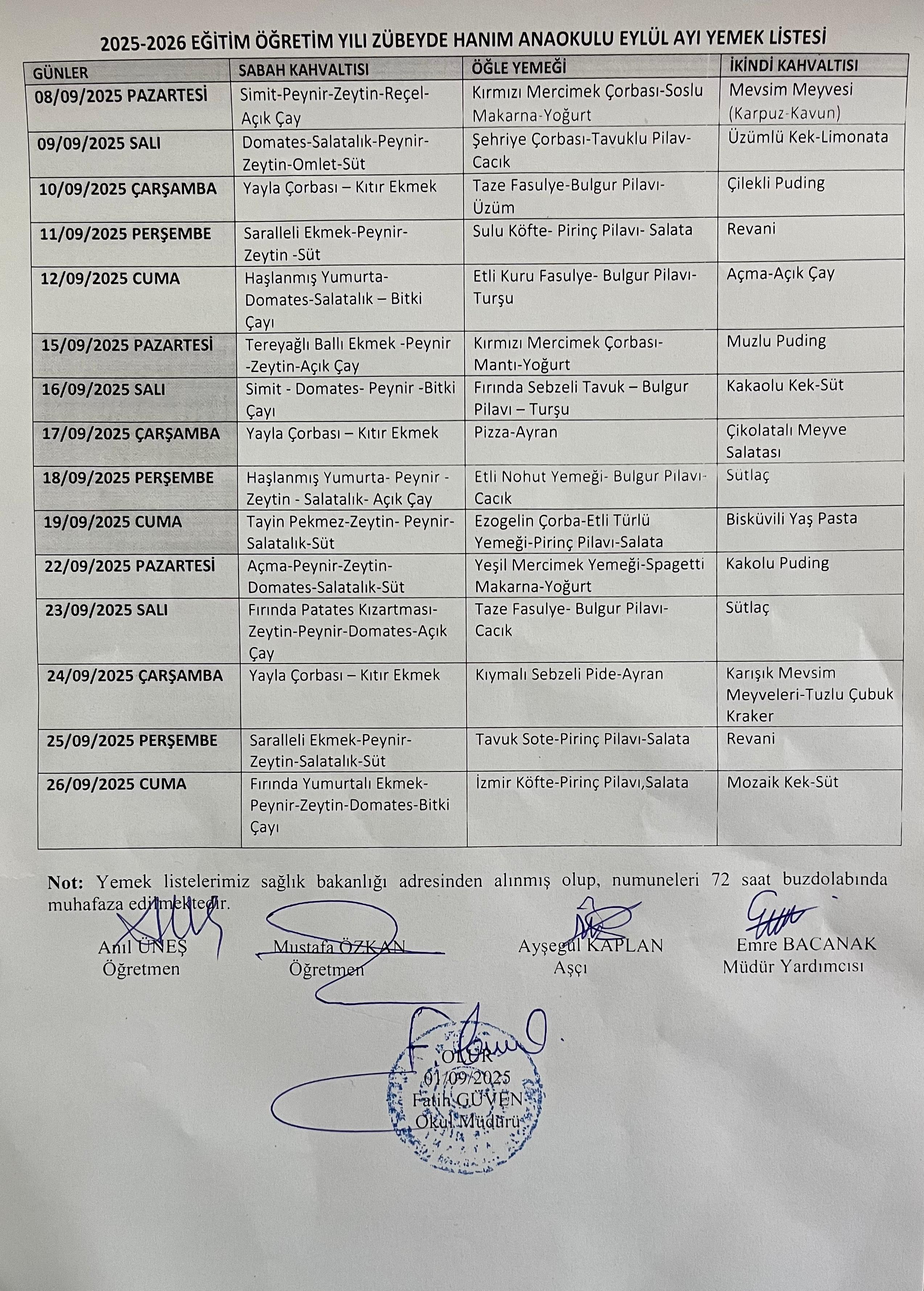 - YEMEK LİSTESİ